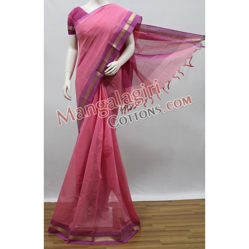 Mangalagiri Powerloom Cotton Saree with Gold Zari Border. Saree comes with Unstitched Blouse Piece.