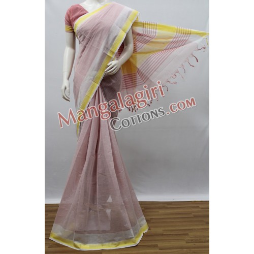 Mangalagiri Powerloom Cotton Saree with Cotton Thread Border. Saree comes with Unstitched Blouse Piece.