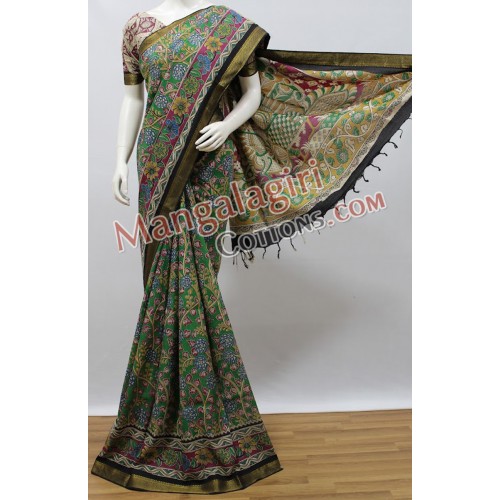 Kalamkari Nizam Boarder Silk Saree. Saree comes with Unstitched Blouse Piece.