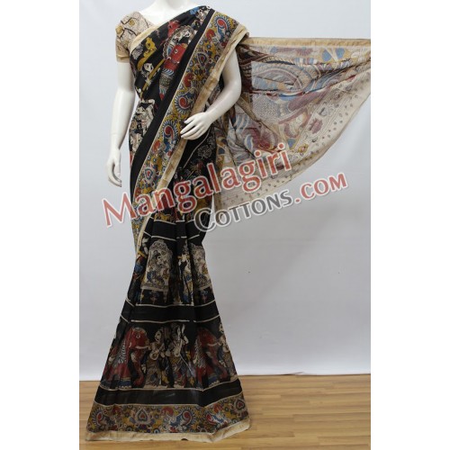Chanderi Kalamkari Print Saree with Zari Boarder. Saree comes with Unstitched Blouse Piece.