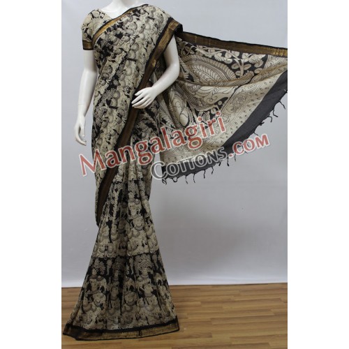 Kalamkari Nizam Boarder Silk Saree. Saree comes with Unstitched Blouse Piece.