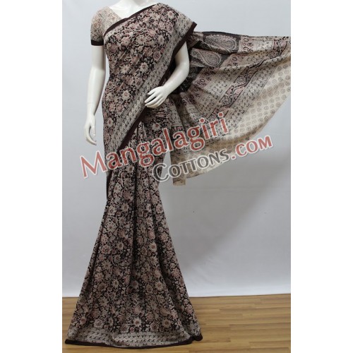 Kalamkari Hand Printed Cotton Saree. Saree comes with Unstitched Blouse Piece.