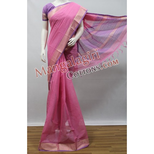 Mangalagiri Powerloom Cotton Saree with Cotton/Gold Zari Border. Saree comes with Unstitched Blouse Piece.