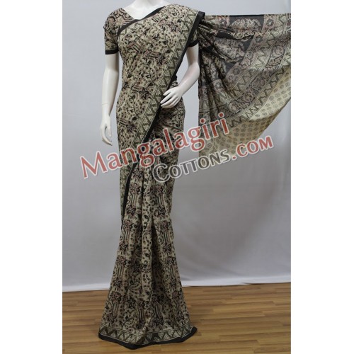 Kalamkari Hand Printed Cotton Saree. Saree comes with Unstitched Blouse Piece.