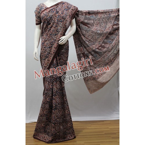 Kalamkari Hand Printed Cotton Saree. Saree comes with Unstitched Blouse Piece.