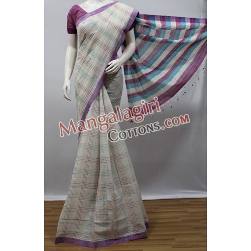 Mangalagiri Handloom Pure Cotton Check Saree with Plain Border. Saree comes with Unstitched Blouse Piece.