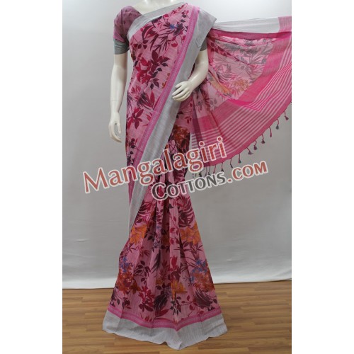 Mangalagiri Powerloom Khadi Cotton Digital Printed Saree with Cotton Thread Border. Saree comes with Unstitched Blouse Piece.