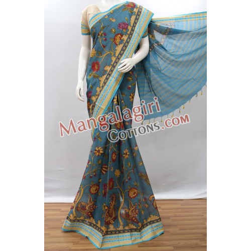 Mangalagiri Powerloom Khadi Cotton Digital Print Saree with Cotton Thread Border. Saree comes with Unstitched Blouse Piece.