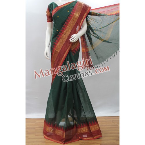 Mangalagiri Powerloom Cotton Kanchi Saree with Gold Zari Border. Saree comes with Unstitched Blouse Piece.