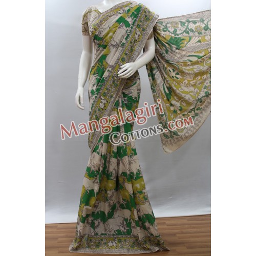 Kalamkari Hand Printed Cotton Saree. Saree comes with Unstitched Blouse Piece.