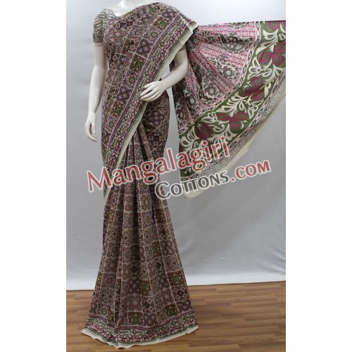 Kalamkari Hand Printed Cotton Saree. Saree comes with Unstitched Blouse Piece.