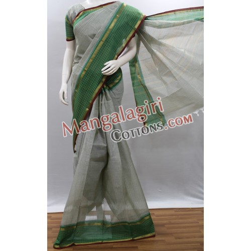 Mangalagiri Powerloom Cotton Kanchi Saree with Gold Zari Border. Saree comes with Unstitched Blouse Piece.