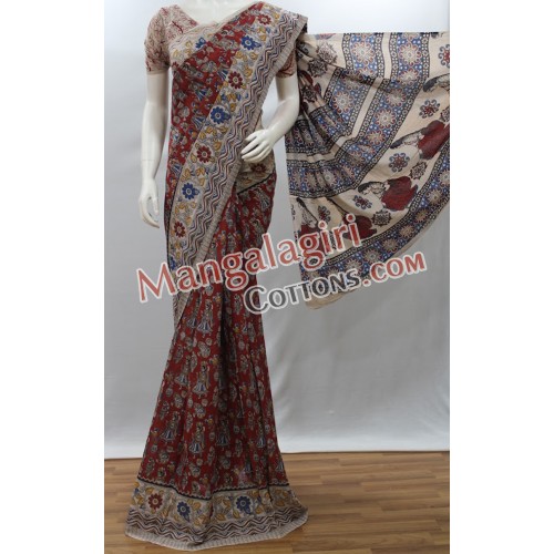 Kalamkari Hand Printed Cotton Saree. Saree comes with Unstitched Blouse Piece.
