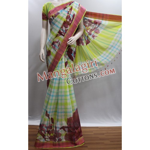 Mangalagiri Powerloom Khadi Cotton Digital Printed Saree with Cotton Thread Border. Saree comes with Unstitched Blouse Piece.
