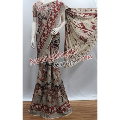 Kalamkari Hand Printed Cotton Saree. Saree comes with Unstitched Blouse Piece.