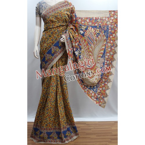 Kalamkari Hand Printed Cotton Saree. Saree comes with Unstitched Blouse Piece.
