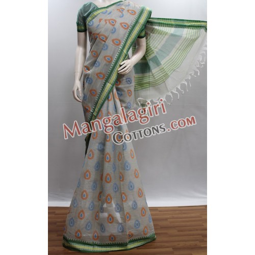 Mangalagiri Powerloom Cotton Printed Saree with Cotton Thread Border. Saree comes with Unstitched Blouse Piece.