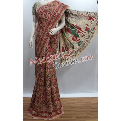 Kalamkari Hand Printed Cotton Saree. Saree comes with Unstitched Blouse Piece.