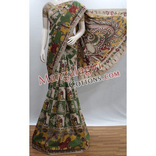 Kalamkari Hand Printed Cotton Saree. Saree comes with Unstitched Blouse Piece.