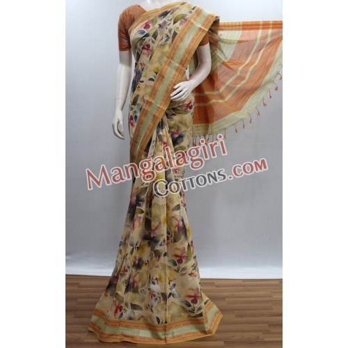 Mangalagiri Powerloom Cotton Digital Printed Saree with Cotton Thread Border. Saree comes with Unstitched Blouse Piece.