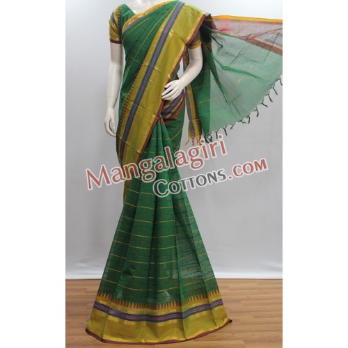 Mangalagiri Powerloom Cotton Kanchi Saree with Gold Zari Border. Saree comes with Unstitched Blouse Piece.
