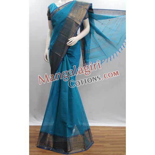 Mangalagiri Powerloom Cotton Kanchi Saree with Gold Zari Border. Saree comes with Unstitched Blouse Piece.