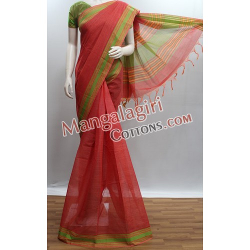 Mangalagiri Powerloom Cotton Self Work Saree with Cotton Thread Border. Saree comes with Unstitched Blouse Piece.