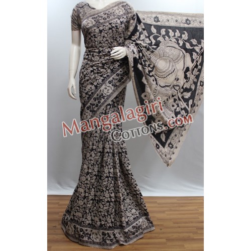 Kalamkari Hand Printed Cotton Saree. Saree comes with Unstitched Blouse Piece.