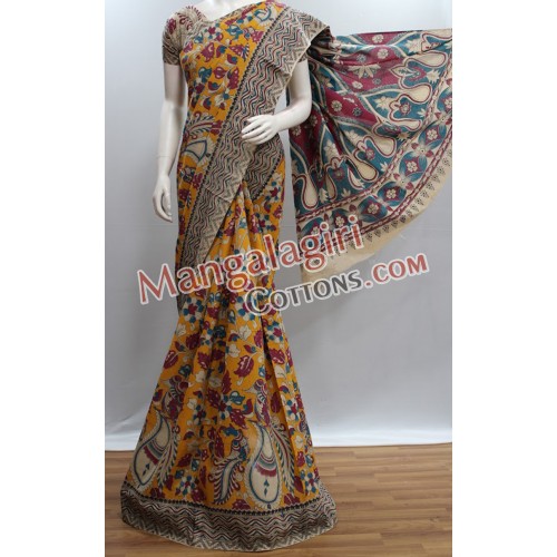 Kalamkari Hand Printed Cotton Saree. Saree comes with Unstitched Blouse Piece.