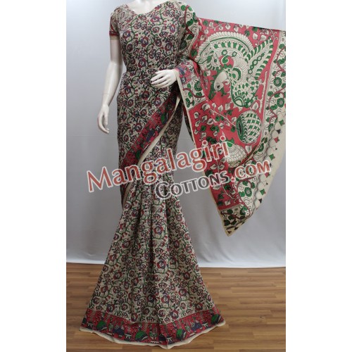 Kalamkari Hand Printed Cotton Saree. Saree comes with Unstitched Blouse Piece.