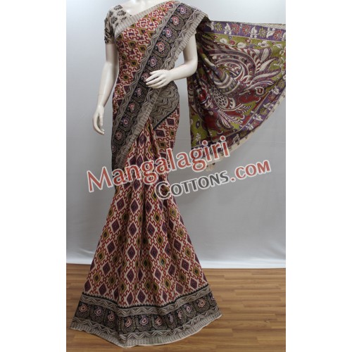 Kalamkari Hand Printed Cotton Saree. Saree comes with Unstitched Blouse Piece.