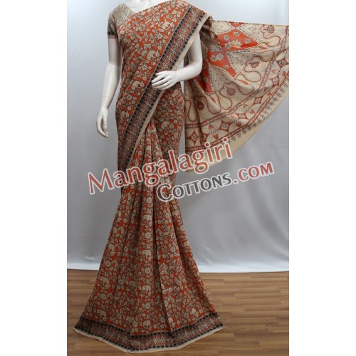 Kalamkari Hand Printed Cotton Saree. Saree comes with Unstitched Blouse Piece.