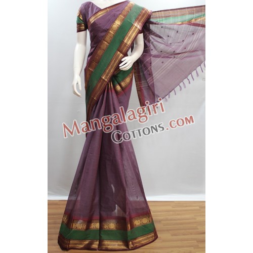 Mangalagiri Powerloom Cotton Kanchi Saree with Gold Zari Border. Saree comes with Unstitched Blouse Piece.