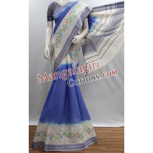 Mangalagiri Powerloom Cotton Shibori Work Saree with Cotton Thread Border. Saree comes with Unstitched Blouse Piece.