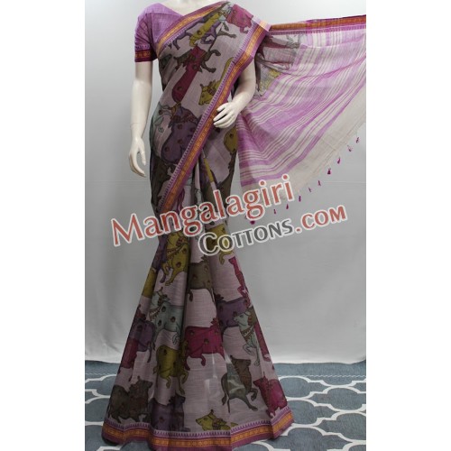 Mangalagiri Powerloom Khadi Cotton Digital Printed Saree with Cotton Thread Border. Saree comes with Unstitched Blouse Piece.