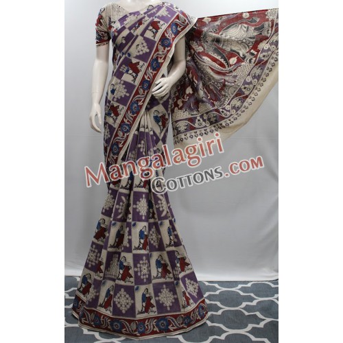 Kalamkari Hand Printed Cotton Saree. Saree comes with Unstitched Blouse Piece.