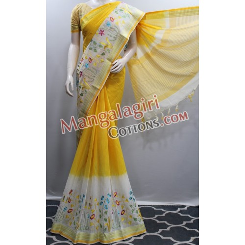 Mangalagiri Powerloom Kanchi Cotton Saree with Gold Zari Border. Saree comes with Unstitched Blouse Piece.