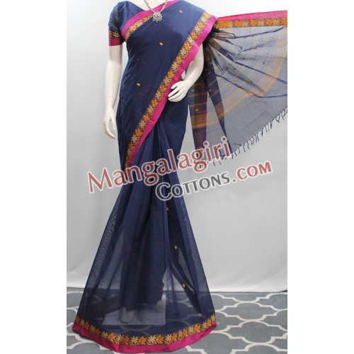 Mangalagiri Powerloom Kanchi Cotton Saree with Cotton Thread Border. Saree comes with Unstitched Blouse Piece.