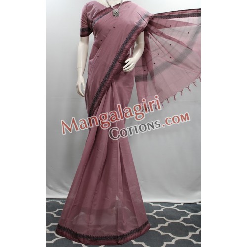 Mangalagiri Powerloom Kanchi Cotton Saree with Cotton Thread Border. Saree comes with Unstitched Blouse Piece.