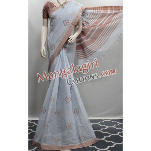 Mangalagiri Powerloom Cotton Work Saree with Cotton Thread Border. Saree comes with Unstitched Blouse Piece.