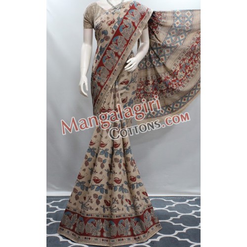 Kalamkari Hand Printed Cotton Saree. Saree comes with Unstitched Blouse Piece.