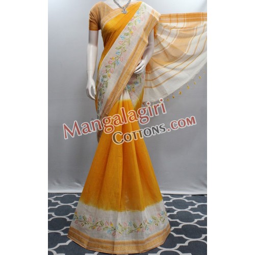 Mangalagiri Powerloom Cotton Shibori Saree with Cotton Thread Border. Saree comes with Unstitched Blouse Piece.