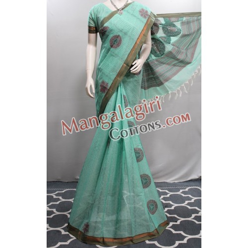 Mangalagiri Powerloom Cotton Butta Saree with Gold Zari Border. Saree comes with Unstitched Blouse Piece.