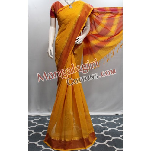 Mangalagiri Handloom Pure Cotton Saree with Gold Zari Border. Saree comes with Unstitched Blouse Piece.