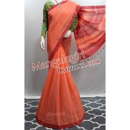 Mangalagiri Handloom Pure Cotton Saree with Plain Border. Saree comes with Running Blouse and Extra 1meter Kalamkari Cotton Blouse.