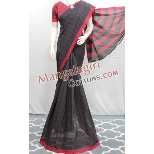 Mangalagiri Handloom Pure Cotton Check Saree with Plain Border. Saree comes with Unstitched Blouse Piece.