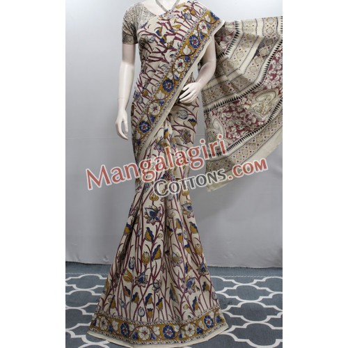 Kalamkari Hand Printed Cotton Saree. Saree comes with Unstitched Blouse Piece.