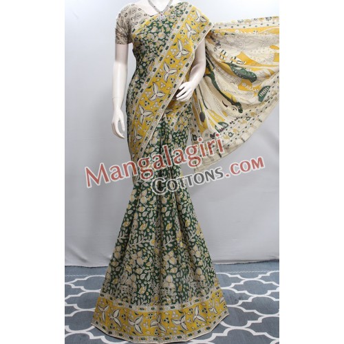 Kalamkari Hand Printed Cotton Saree. Saree comes with Unstitched Blouse Piece.