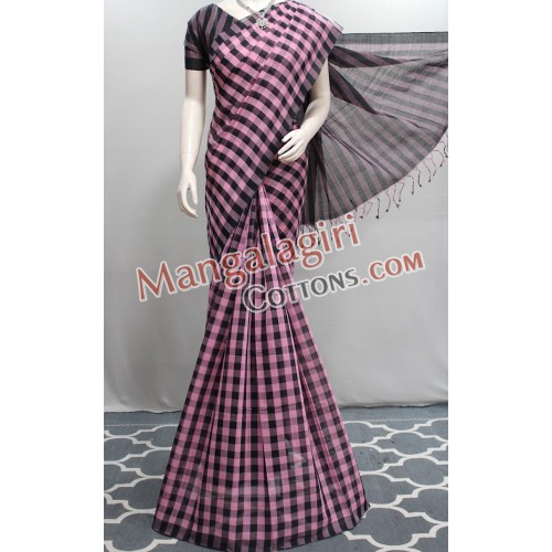Mangalagiri Handloom Pure Cotton Check Saree with Plain Border. Saree comes with Unstitched Blouse Piece.