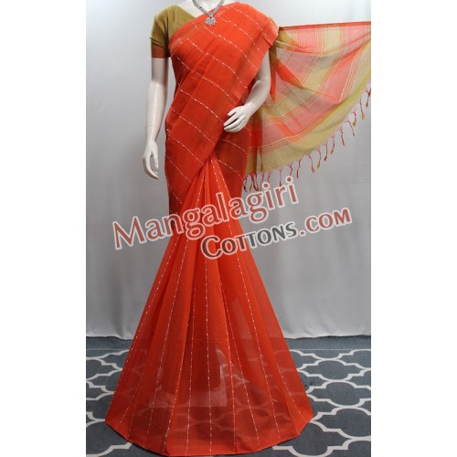 Mangalagiri Handloom Pure Cotton Jute Line Saree with Plain Border. Saree comes with Unstitched Blouse Piece.